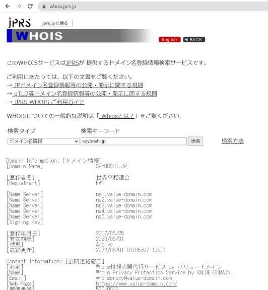 徹底的に隠してたのにスパイ防止法公式サイトのドメインが統一協会(世界平和連合)でバレたの笑った