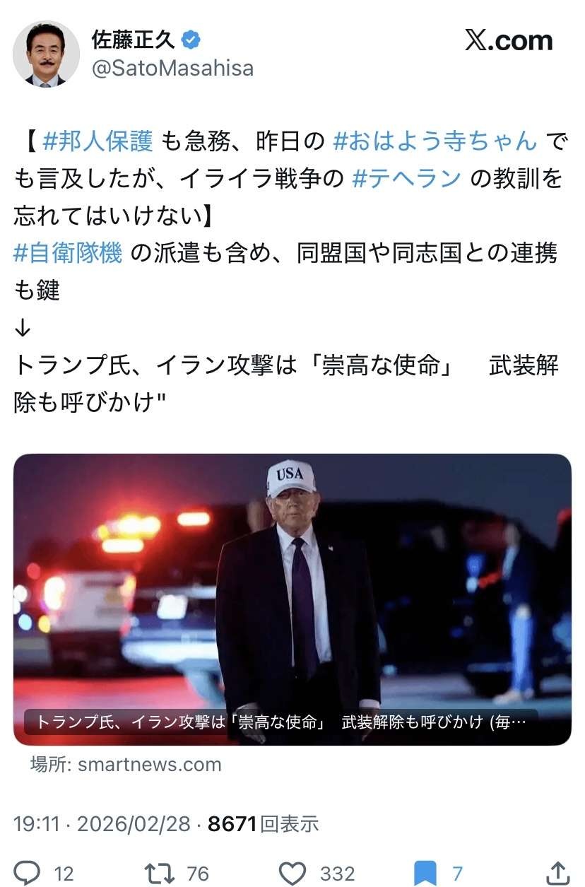 自衛隊派遣言いたいだけやろジェノサイドヒゲジジイ