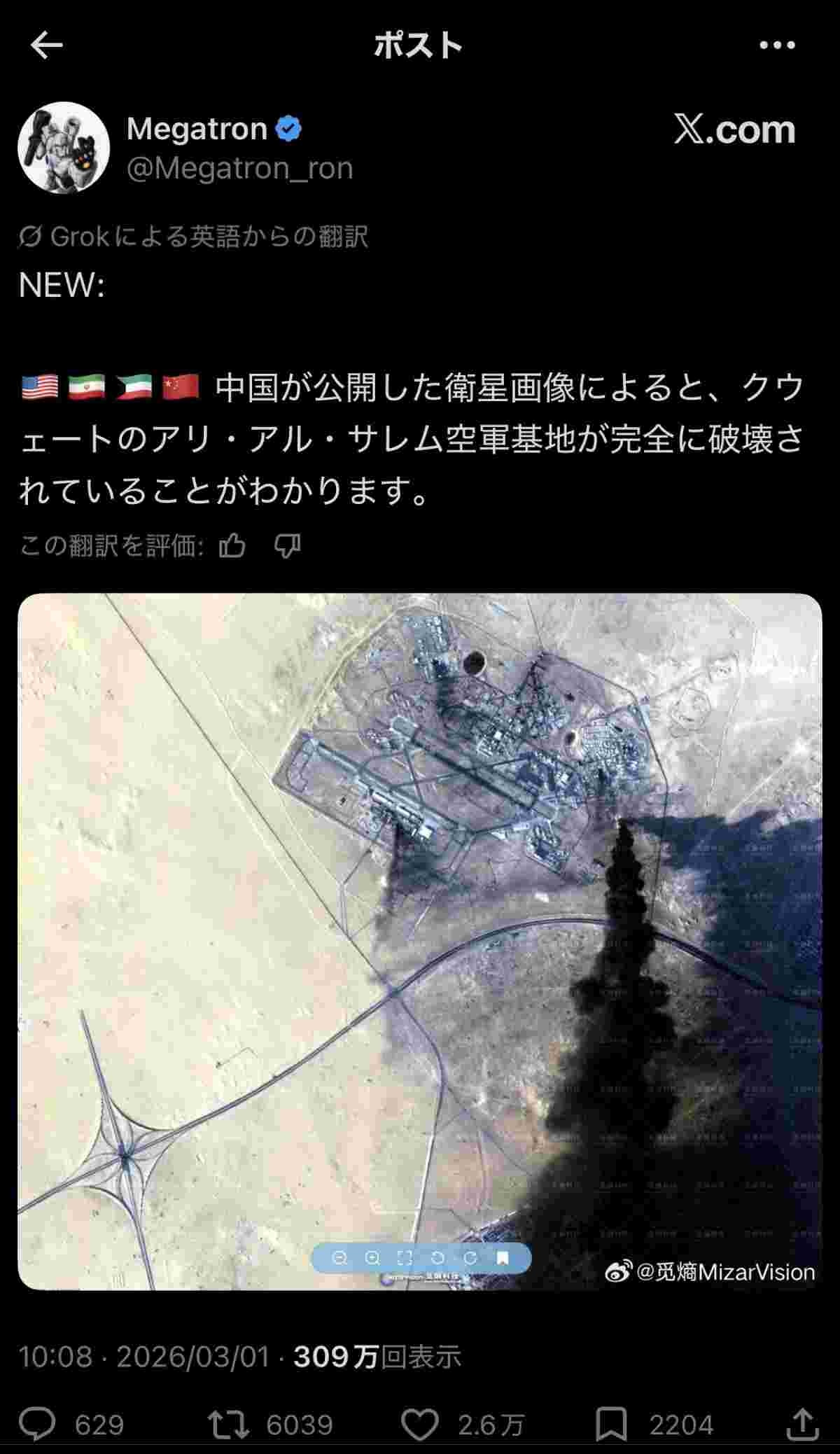アメリカはイランによる空軍基地の破壊を中国にバラされ、国威を地で行っている。大国の黄昏は情報の漏洩で決定的になる。中国のリークはアメリカの武力信頼を瓦解させ、世界の覇権を握る力すらも削ぎ落としている。
