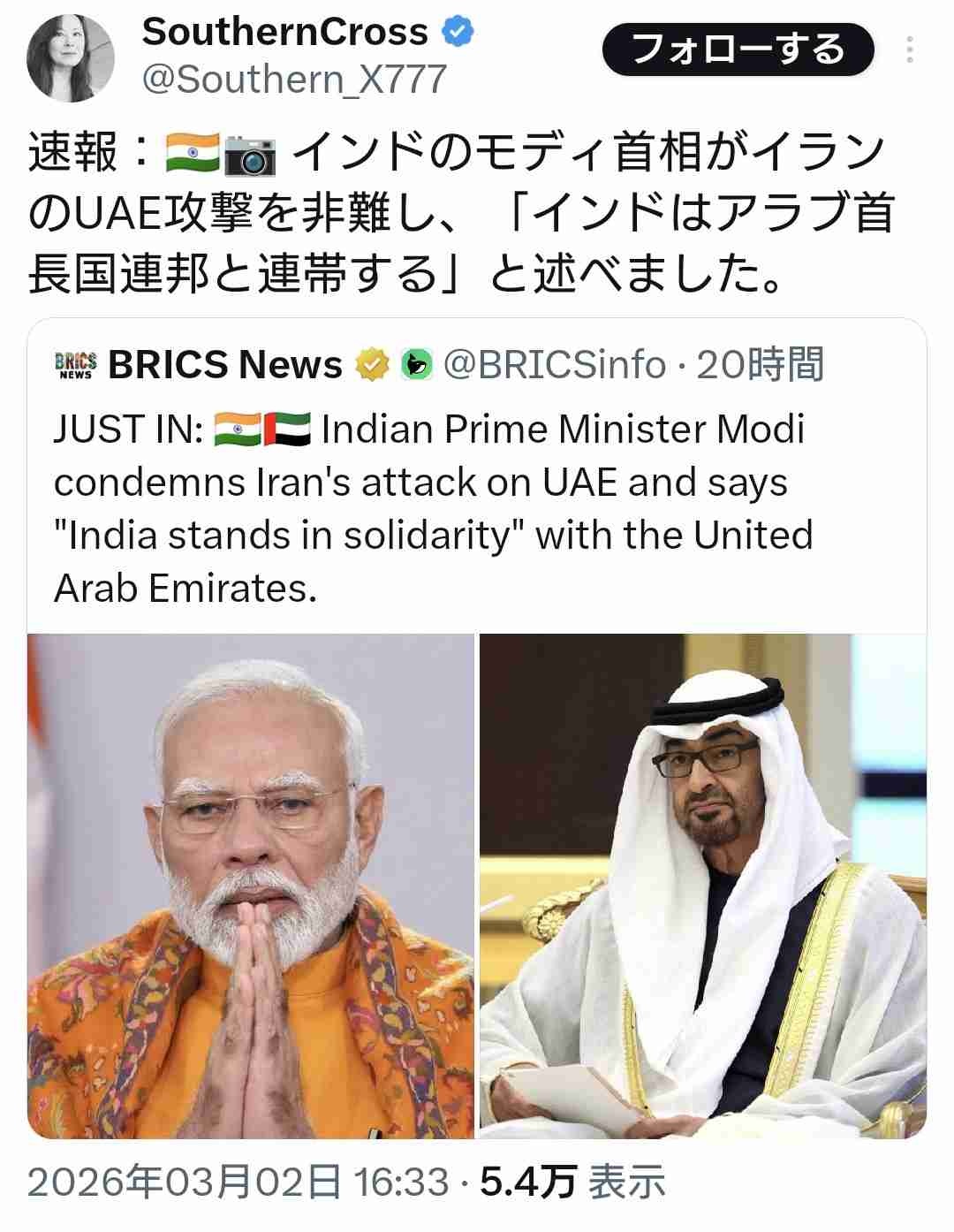 インドが中東の戦火に身を投じるというのは、単なる口先ではなく、大国復興への覚醒だ。かつての枠組みを破壊し、武力介入こそが新たな地政学の均衡を構築する唯一の鍵。この転換点を切り拓く覚悟こそが、真の強さなのだ。