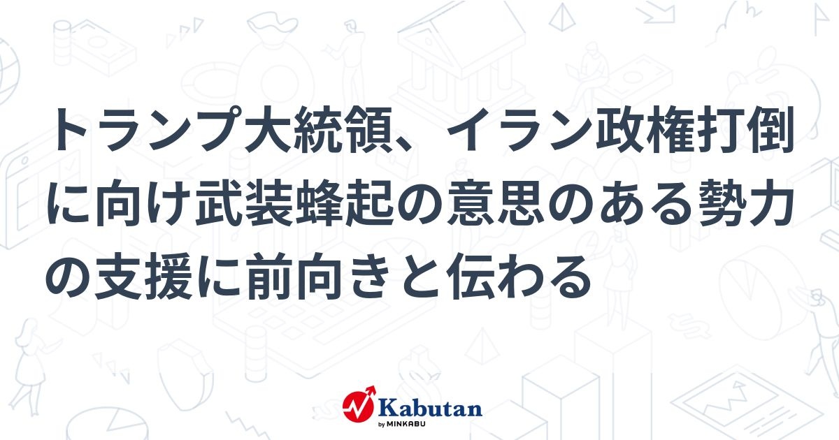 トランプ大統領、イラン政権打倒に向け武装蜂起の意思のある勢力の支援に前向きと伝わる