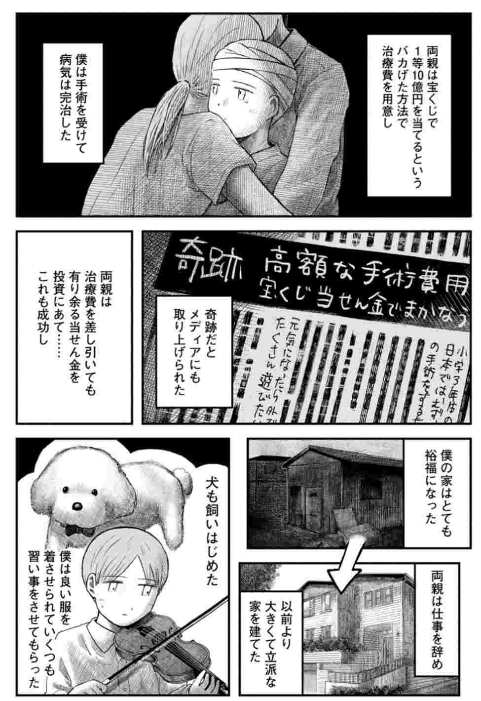 貧乏だから頑張って勉強して一流大学にいこうとしてたけど、受験前に宝くじが当たって精神が乱されて受験落ちたって漫画も広告で見た。
