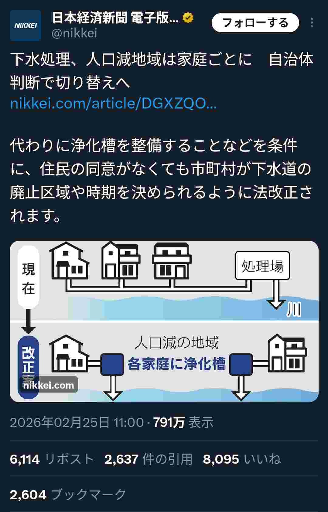日本政府「下水道もう維持できません!過疎地は強制的に浄化槽です」