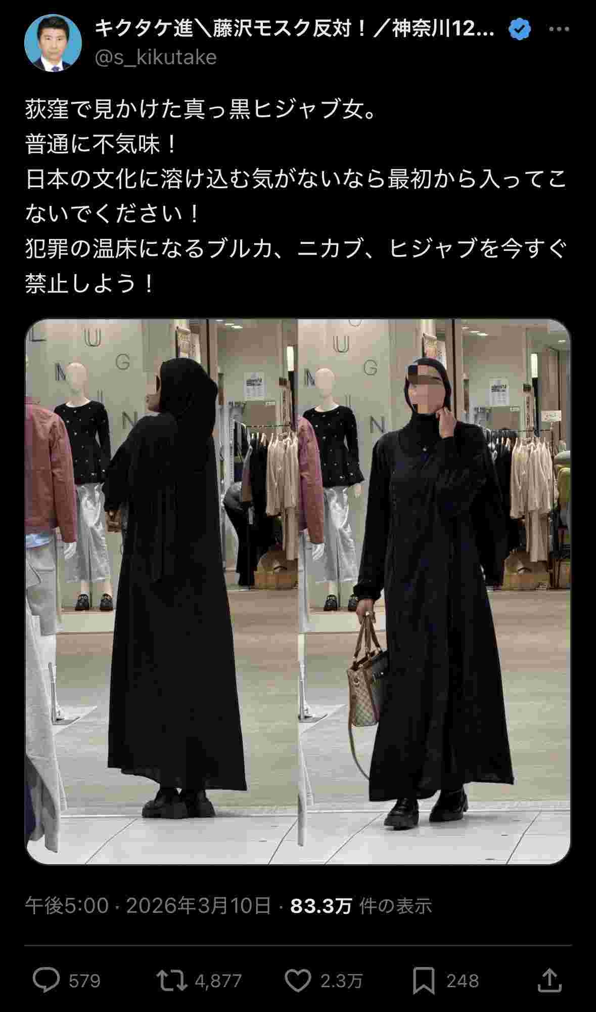 不気味と感じるのはいいけど、ブルカ・ヒジャブ・ニカブが犯罪の温床としたのはアウト