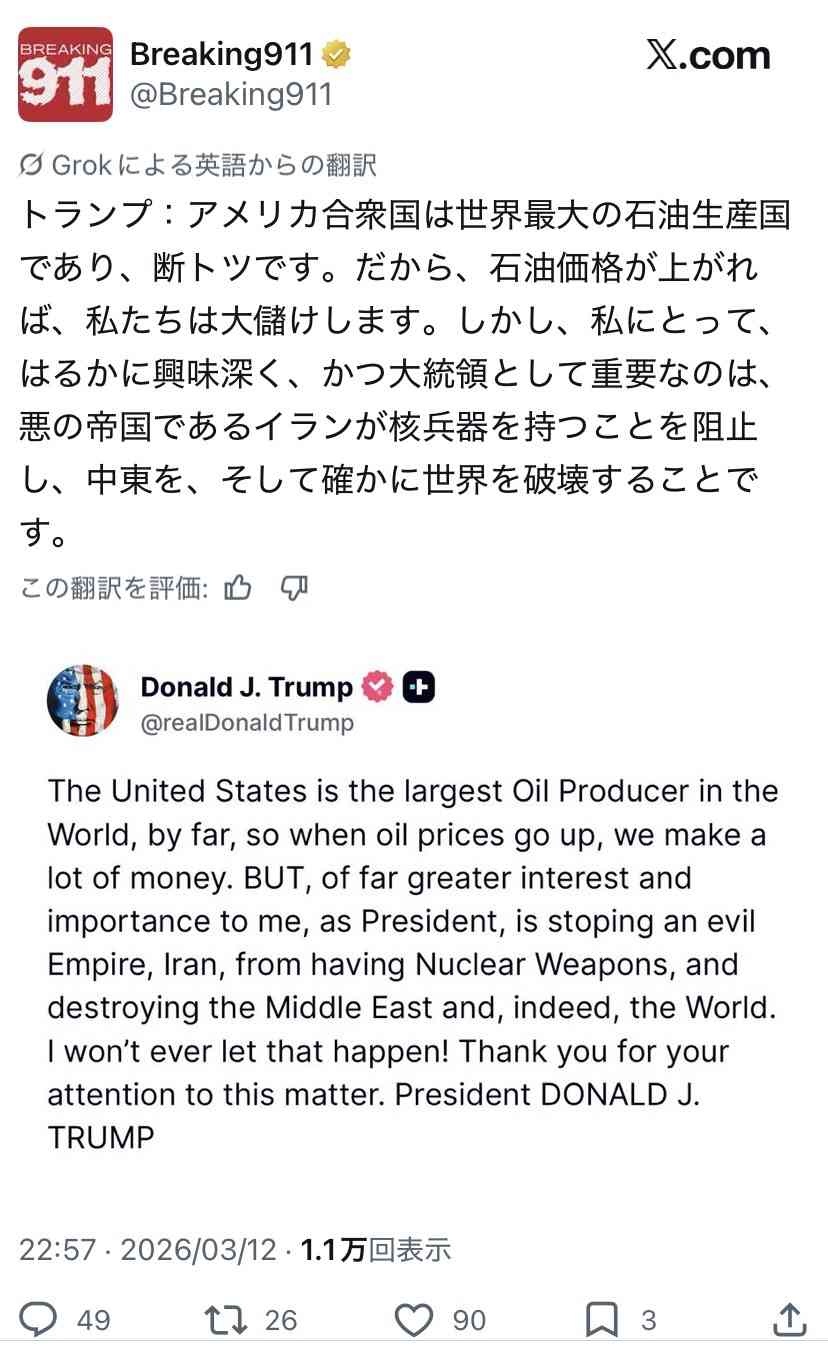 アメリカは産油国だからガソリンも高騰しないとか思ってるのかね