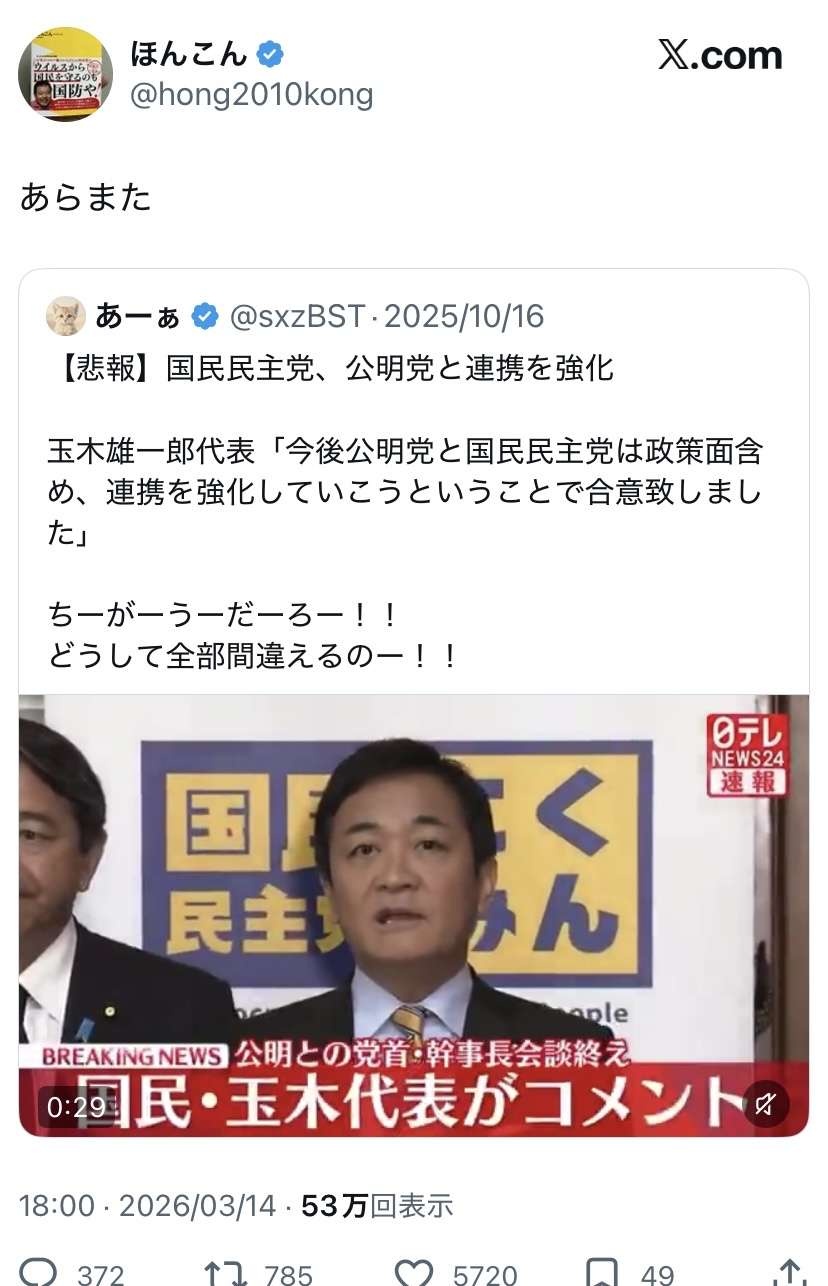 ネトウヨの脳内では公明党は悪の集団なんだから去年の発言であっても国民民主が叩く対象なのは変わらんな