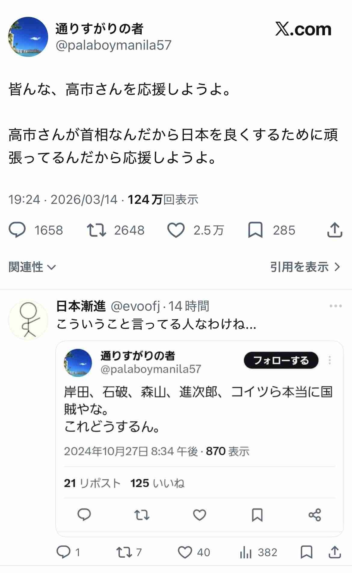 こいつら高市が移民入れる気満々なのは総スルーなんだな