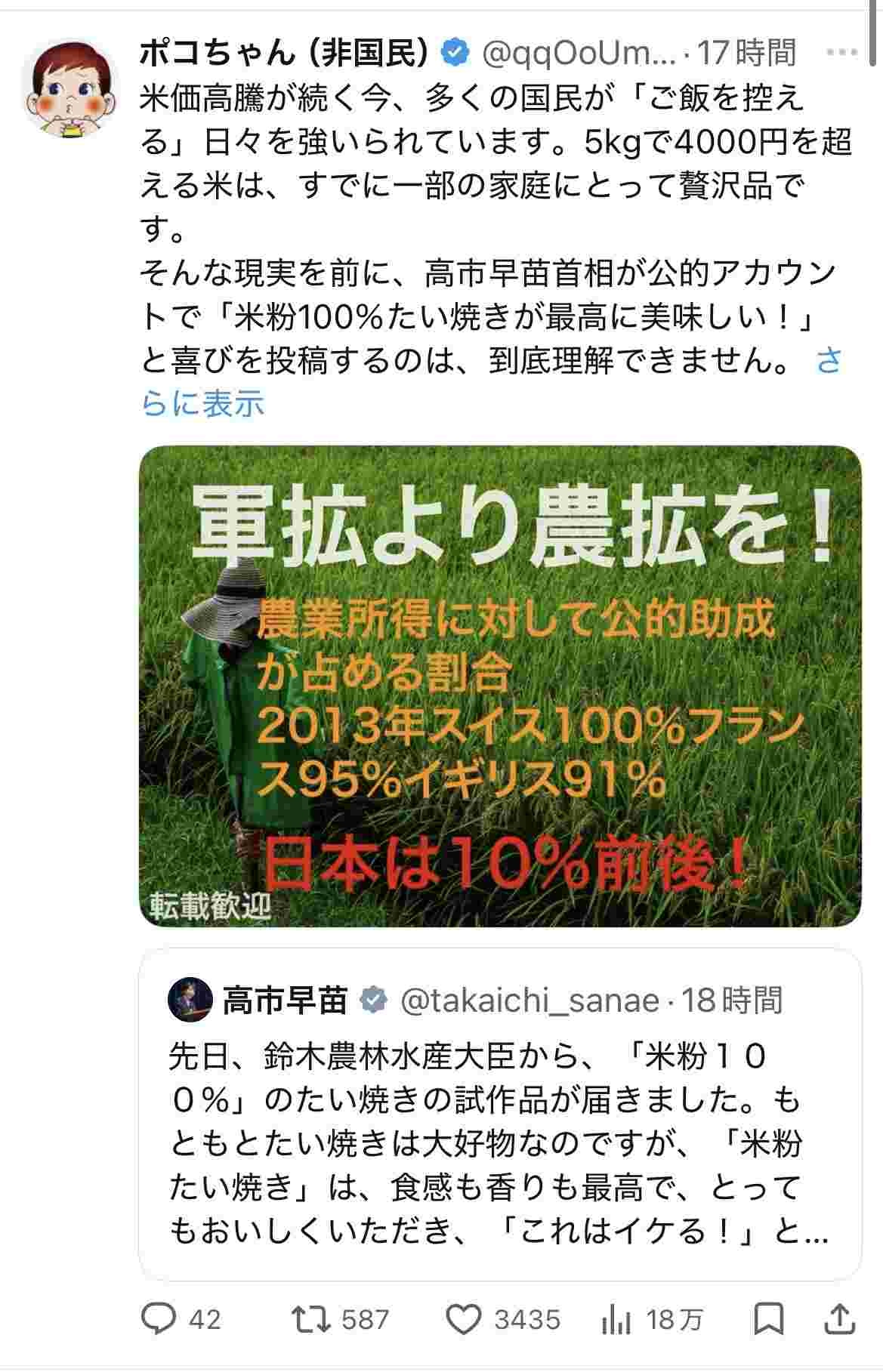 このバカ高市は「食料安全保障」を使えば知的に見えると思ってる節あるよな