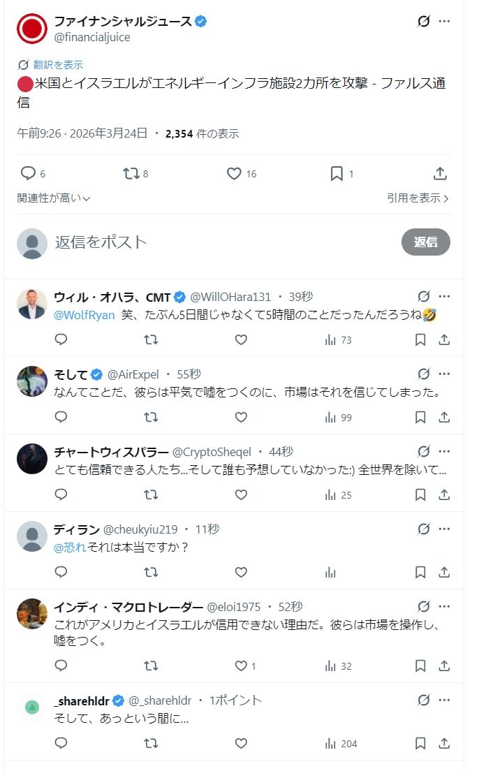 こんなことして停戦できるわけないのに、市場は反応してないな