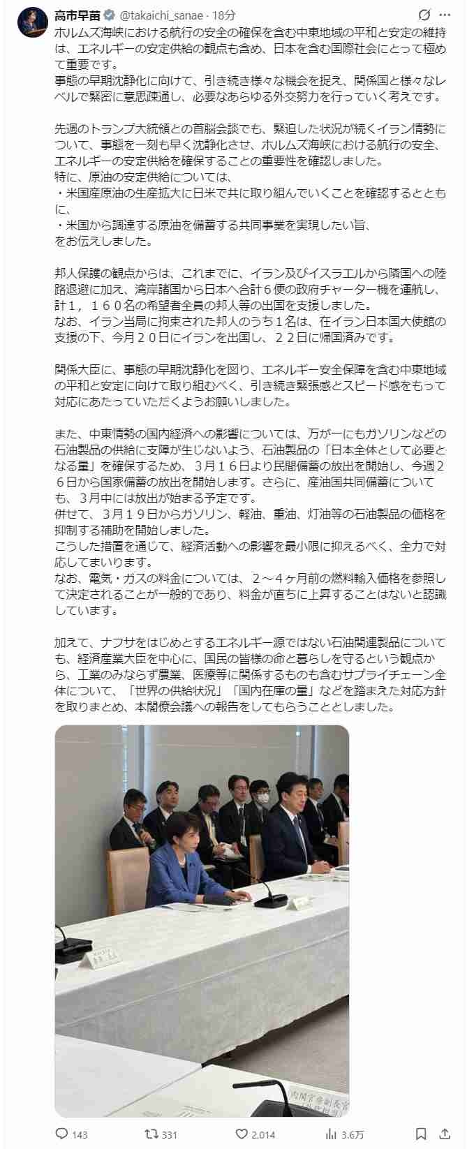 イランの攻撃で日本への石油輸出主要国であるサウジとかUAE等の石油プラントが破壊されてしまったので、戦争が終わりさえすればなんとかなるって話でもないようだ