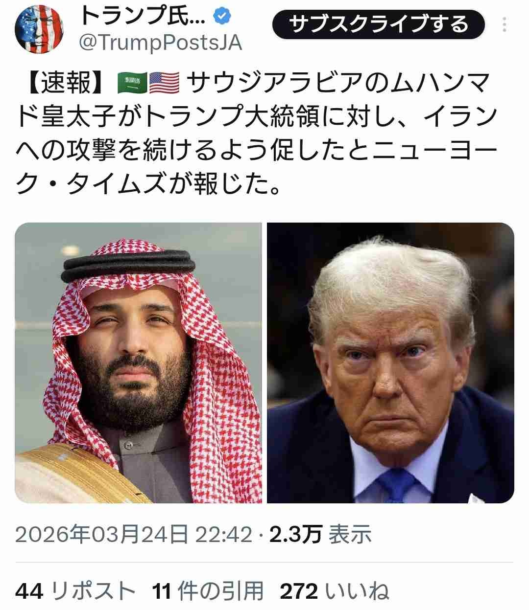 サウジ皇太子「トランプさん!イランへの攻撃を継続して下さい」