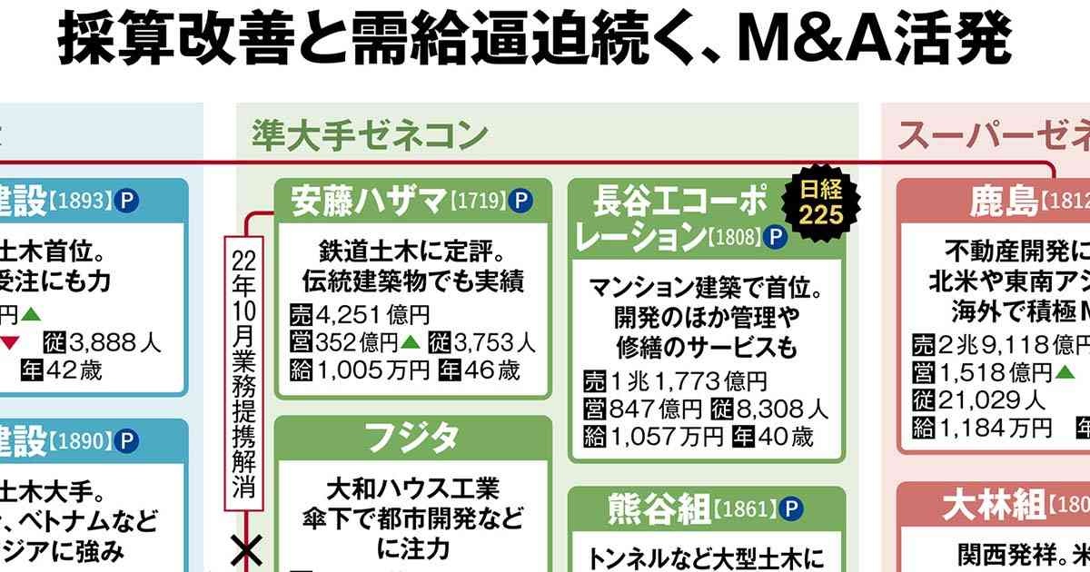 不確実性の高まる世界情勢、高市新政権への期待、労働人口の減少、AI(人工知能)のさらなる進化……どの業界に飛躍のチャンスがあり、企業はどう備えるべきなのか。幅広いシーンで活用されている『日経業界地図 2026年版』から、要注目分野の「業界地図」を紹介する。今回は海外展開やM&Aの動きが注目される「建設」業界を見ていこう。以下ソース