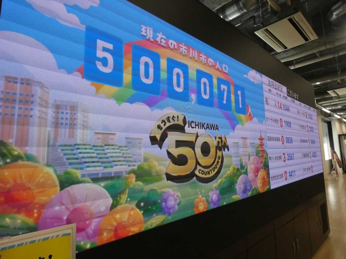 千葉県市川市は2日、同市の人口が1日に50万人に到達したと発表した。県内で人口50万人を超えたのは千葉市、船橋市、松戸市に続き4市目。市川市では今後、市役所第1庁舎1階に人口50万人到達をお知らせするパネルを設置するほか、市内各所に垂れ幕を掲げる予定で、記念イベントの開催も検討している。