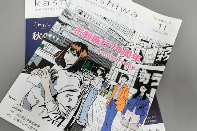 イラストは、柏駅西口に男女が立つ2作品。うち1作品は市広報誌の一昨年11月号の表紙に使われ、バックナンバーとして市のホームページで公開。パネル化して百貨店に掲示後、市役所秘書課前にも展示していた。委託制作費は100万円だった。