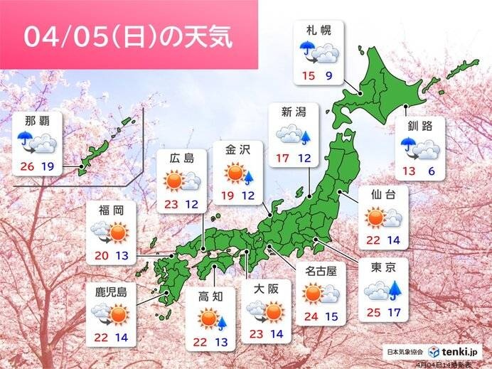 明日5日は東京で最高気温25℃予想 お花見は暑さ対策を