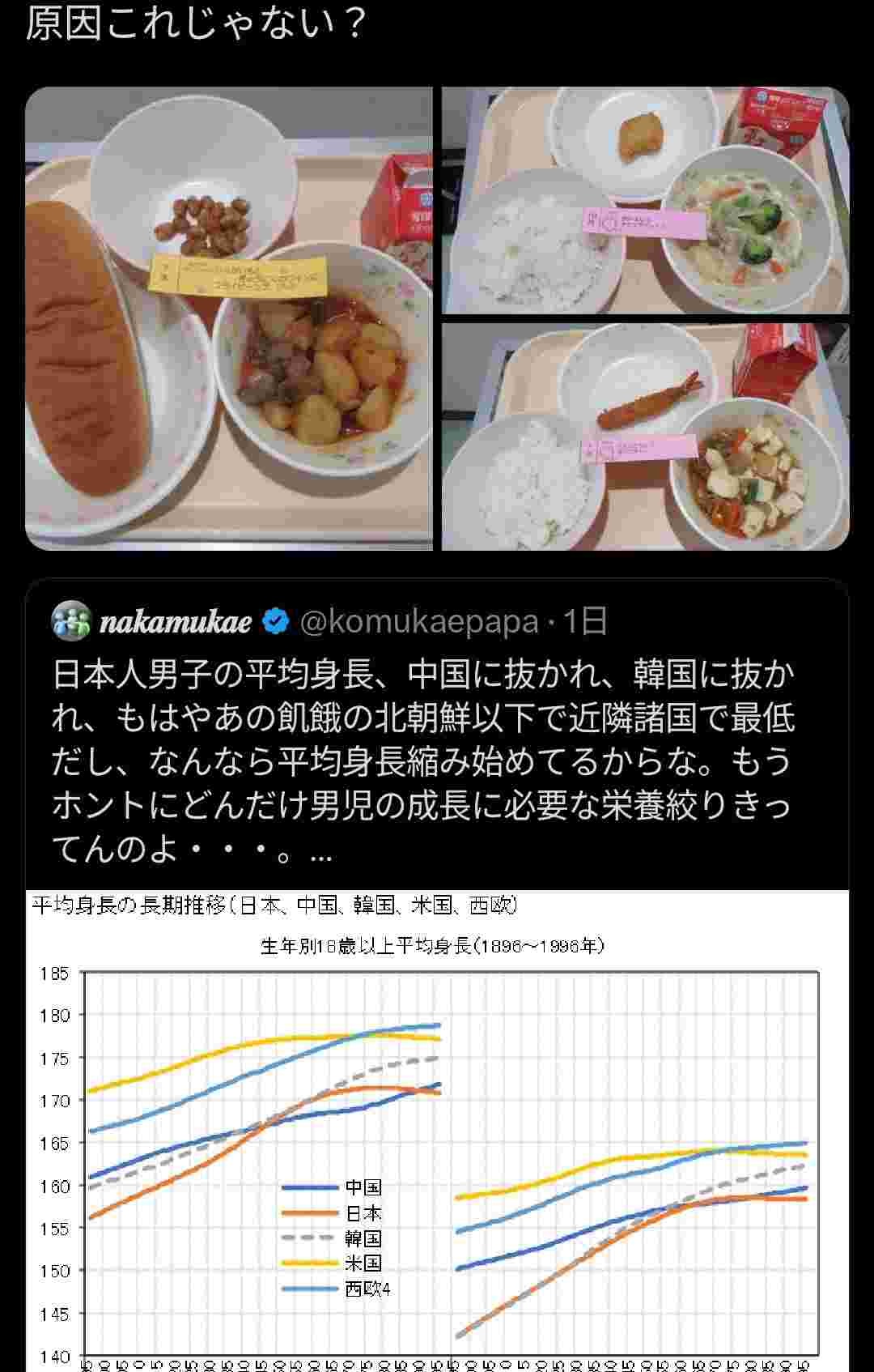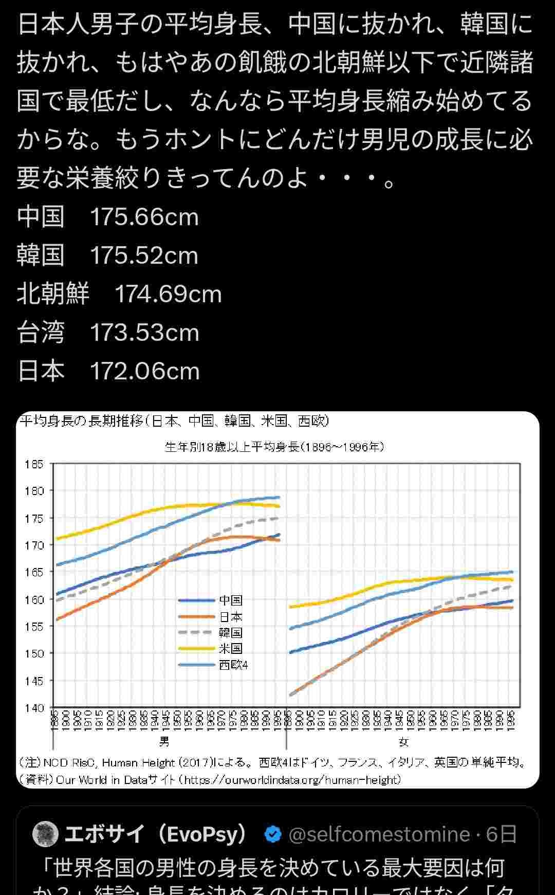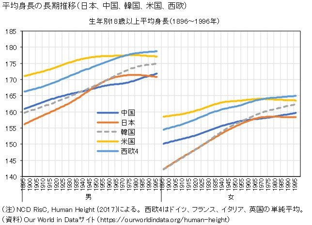 日本人の身長が一旦上がってから落ちてきてるのが厳しい