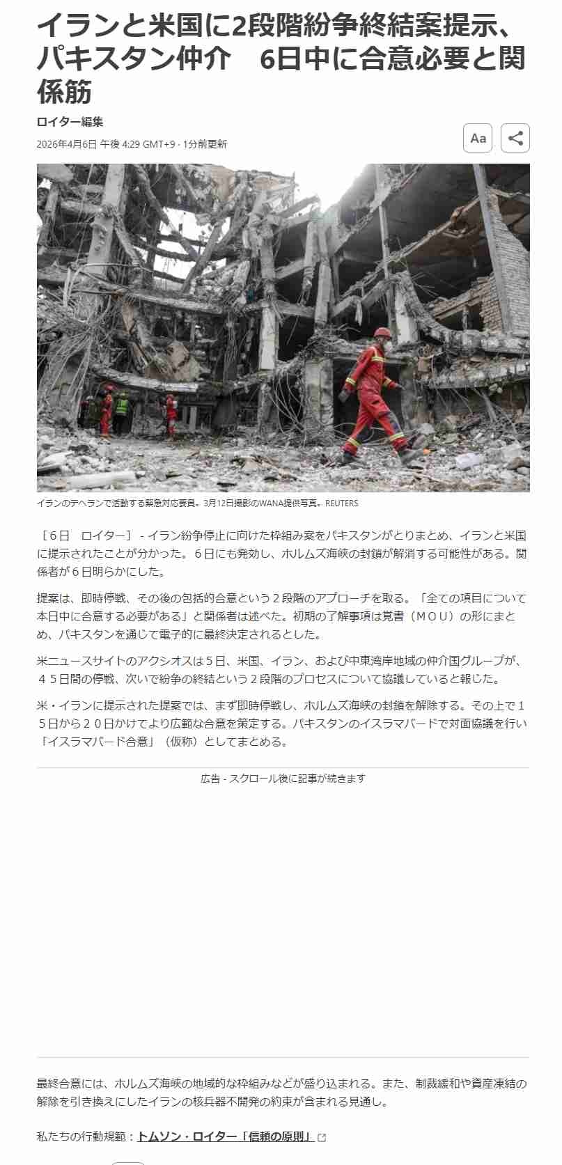 イスラエルとアメリカが停戦破って攻撃したらパキスタンが代わりに爆撃されてくれるのかっての