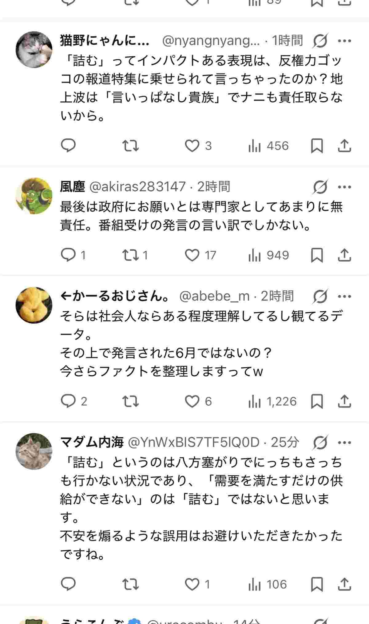 高市支持者たち「需要を満たすだけの供給を満たさない=詰むでは無い!」と報道特集を袋叩き
