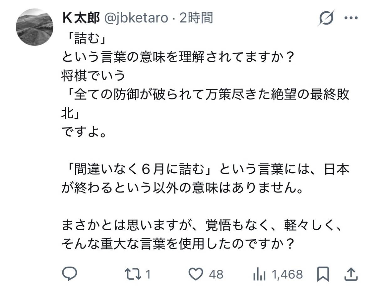 ただの揚げ足取りなんだから詰むって言葉を変えたらいいだけじゃんねこれ