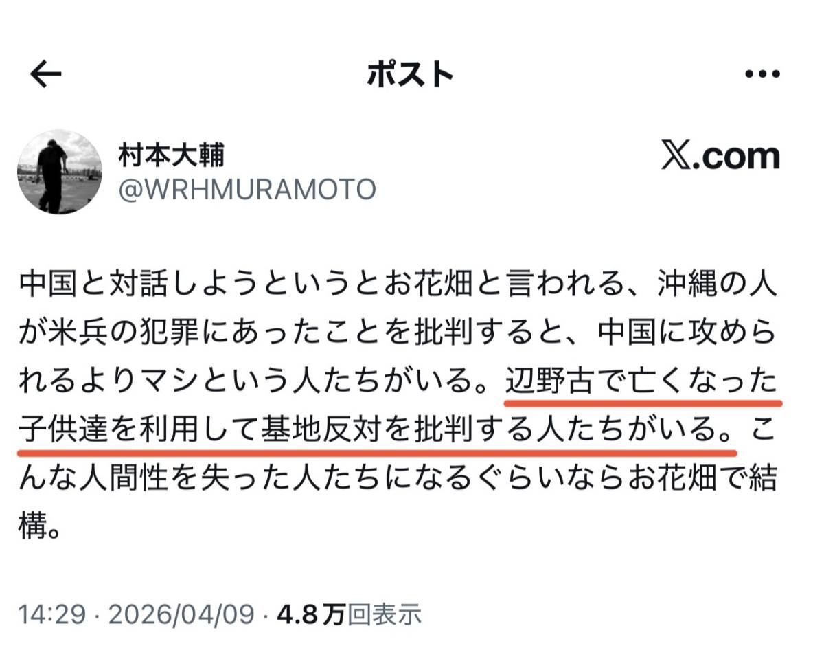 子どもたちを利用して死なせたのが基地反対連中な