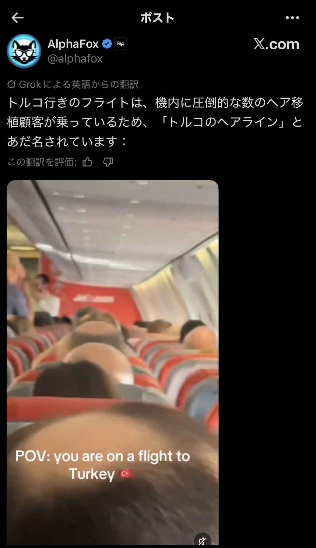 トルコ行きの便とトルコ発の便で有毛率比較したらイグノーベル統計学賞取れるだろ