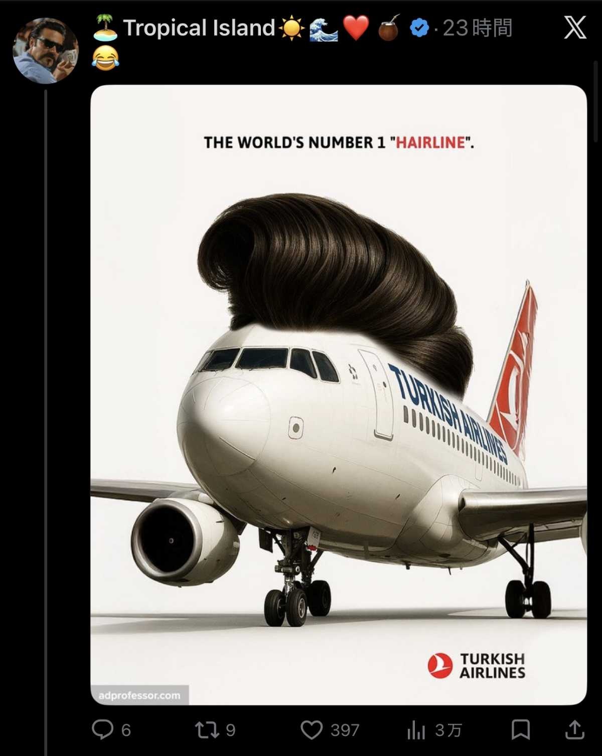 これじゃターキッシュエアラインズじゃなくて多ー毛移植ヘアラインズだろこれ