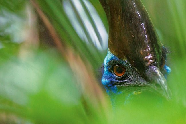 「クイーンズランドの湿潤熱帯地域」の草木の中に佇むヒクイドリ。ユネスコの世界遺産にも登録されているこの地域は、多種多様な植物群や、希少かつ絶滅の危機に瀕した動植物が生息している。(CHRISTIAN ZIEGLER, NAT GEO IMAGE COLLECTION)