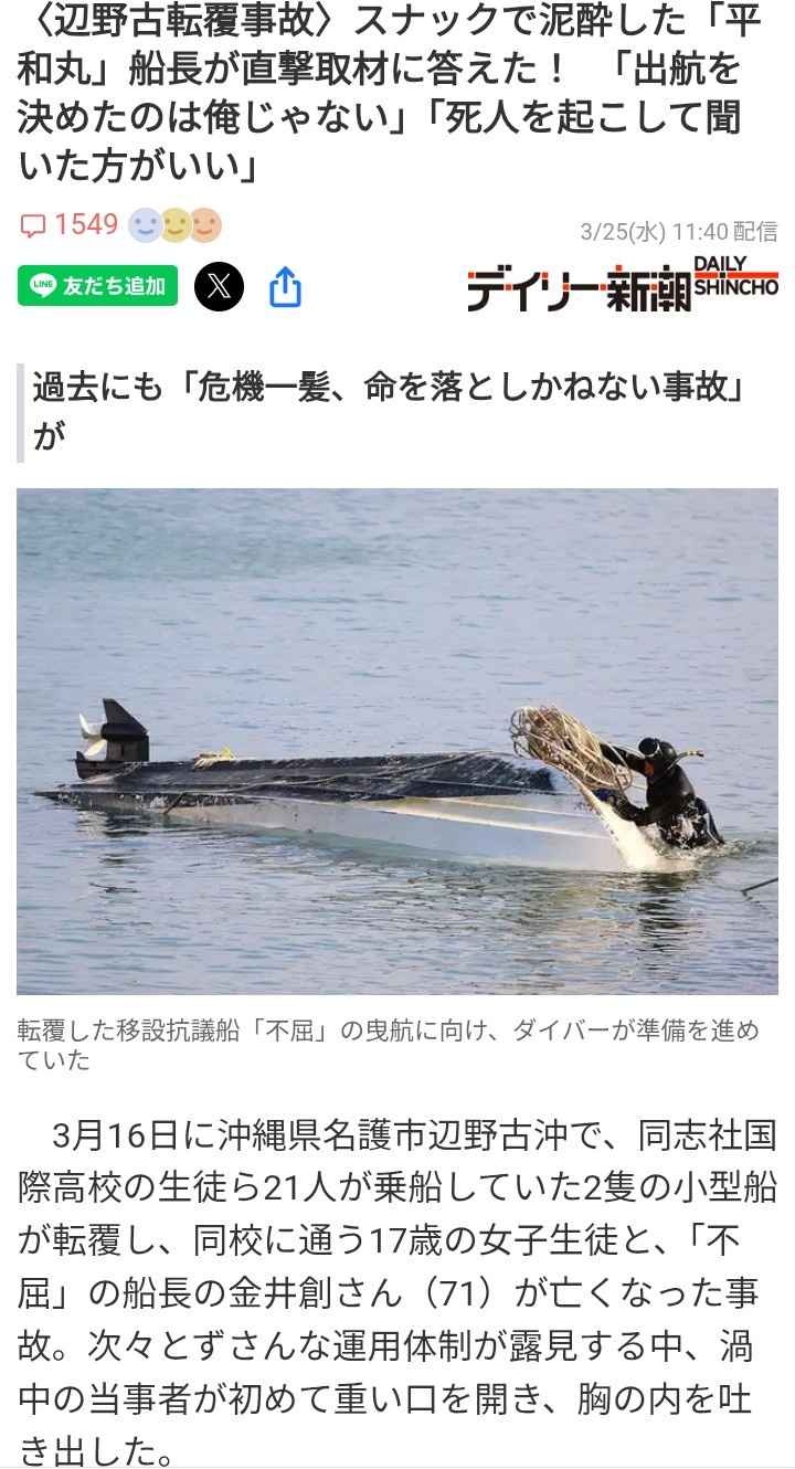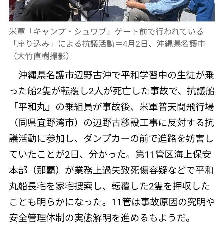 ただの事故で海保が救助遅れて人が死んだだけなのに、抗議団体のせいにしてるネトウヨ