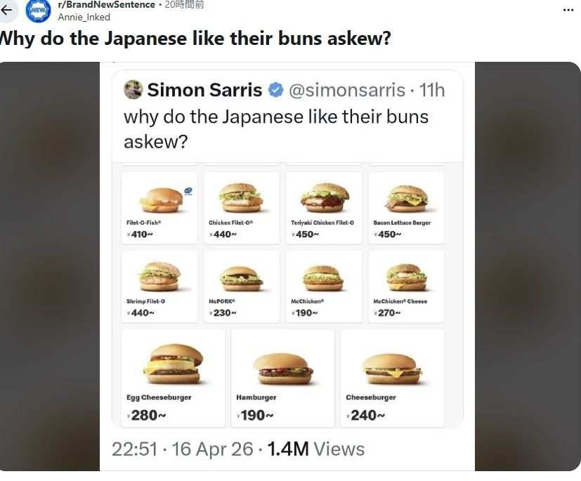 【高市】 日本のハンバーガーだけアスペ! 上のパンズがずれてる