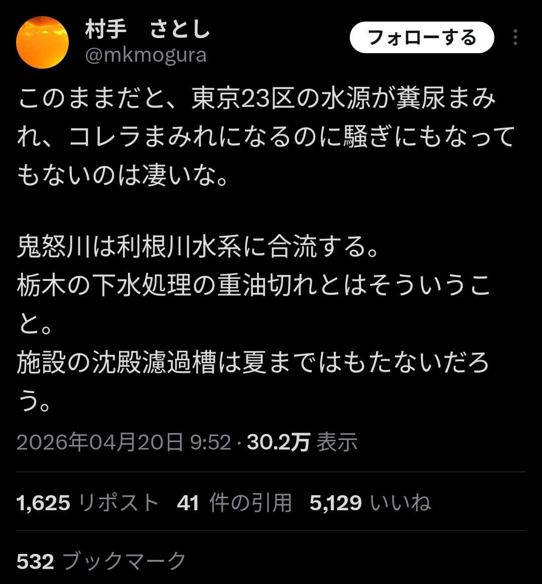 重油切れたら雨水ポンプ動かなって街が水没するだけだからウンチにまみれるのは栃木県民では?