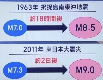 M7.0前震→18時間後→M8.5本震