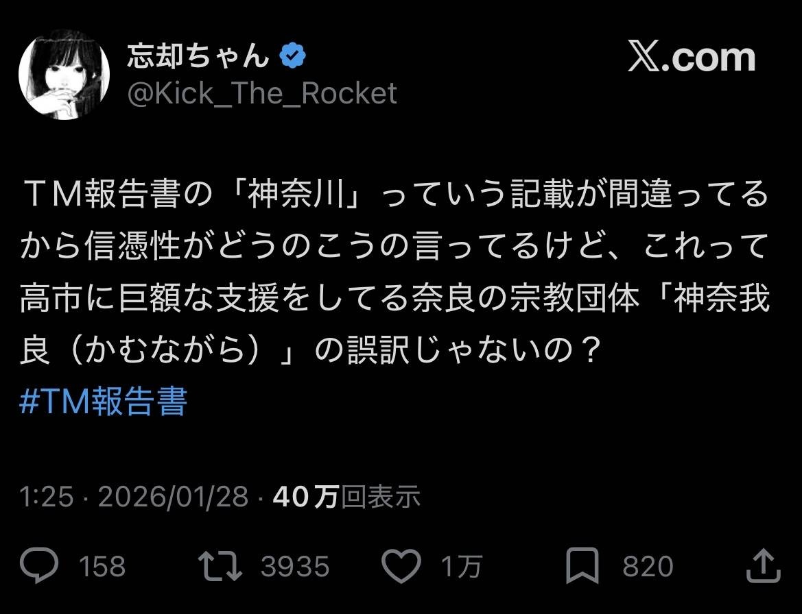統一教会のTM文書にも「神奈我良」の記載あり