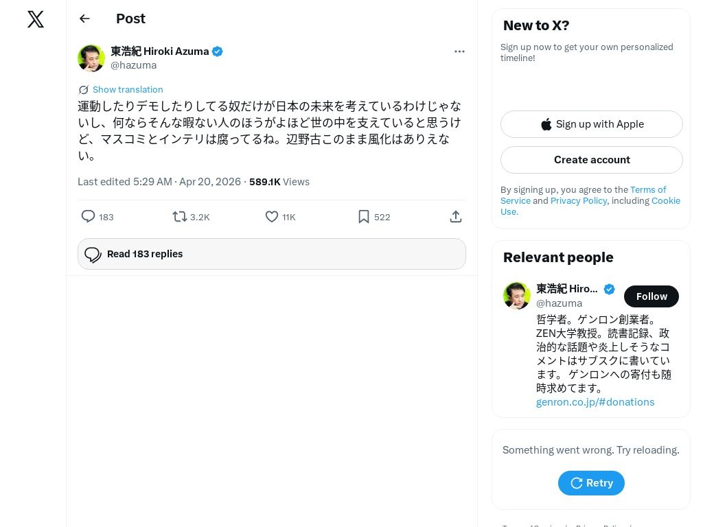 この人は暇そうだからデモ行けばとは思う
