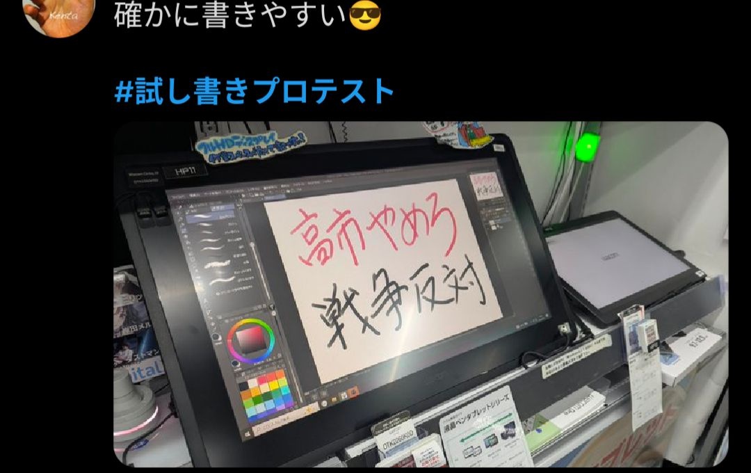 『試し書きプロテスト』が大流行!日本中の家電量販店の店頭デモ機が"反高市"一色に染まるwww