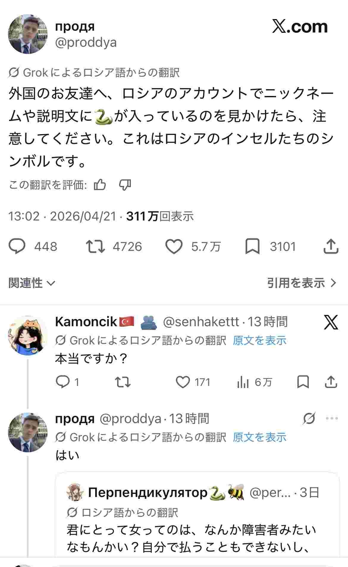 まん蛇はロシア人だった…?