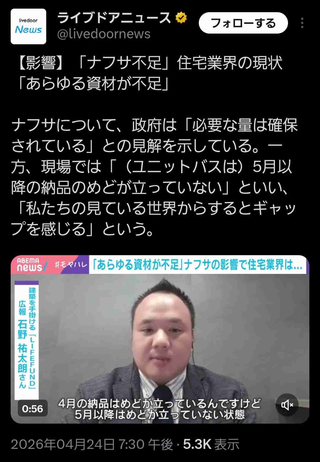 政府「ナフサは足りている😤」業者「5月から全く目処立たないのにどこの世界の話なの🥺」