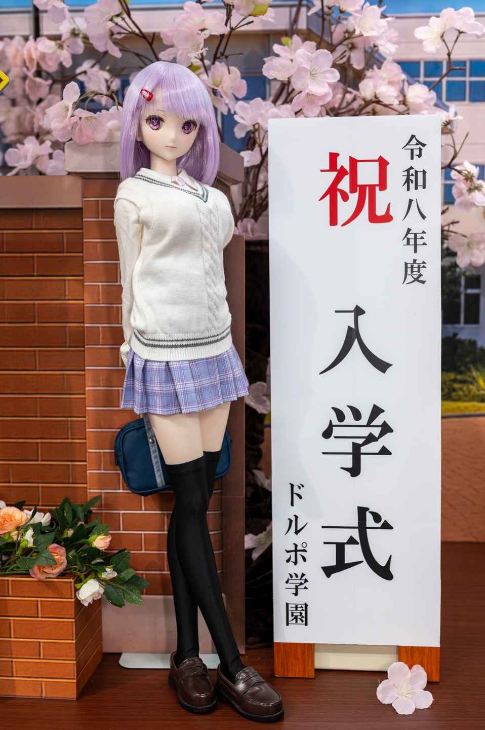 入学式シチュエーションの撮影スペースに制服姿のドールちゃん良いな