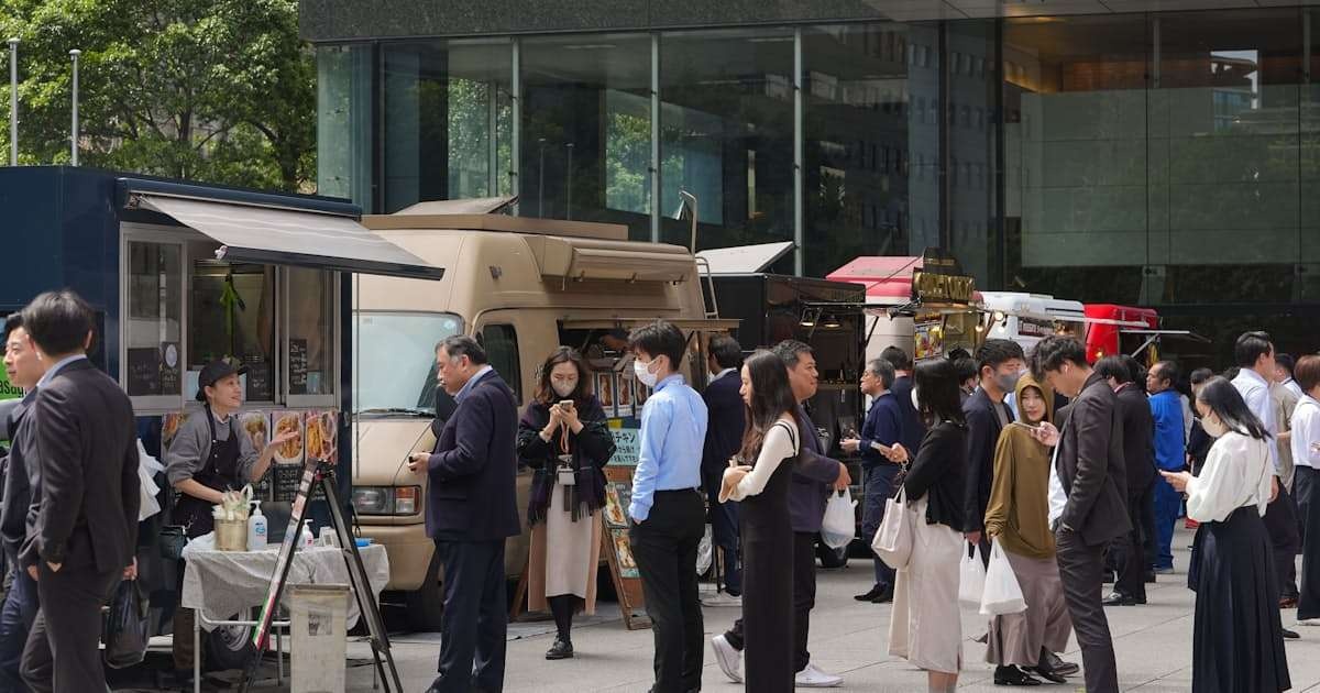 東京丸の内にキッチンカーがたくさん来るけど2000円のランチメニューに若いOLが行列してるよ