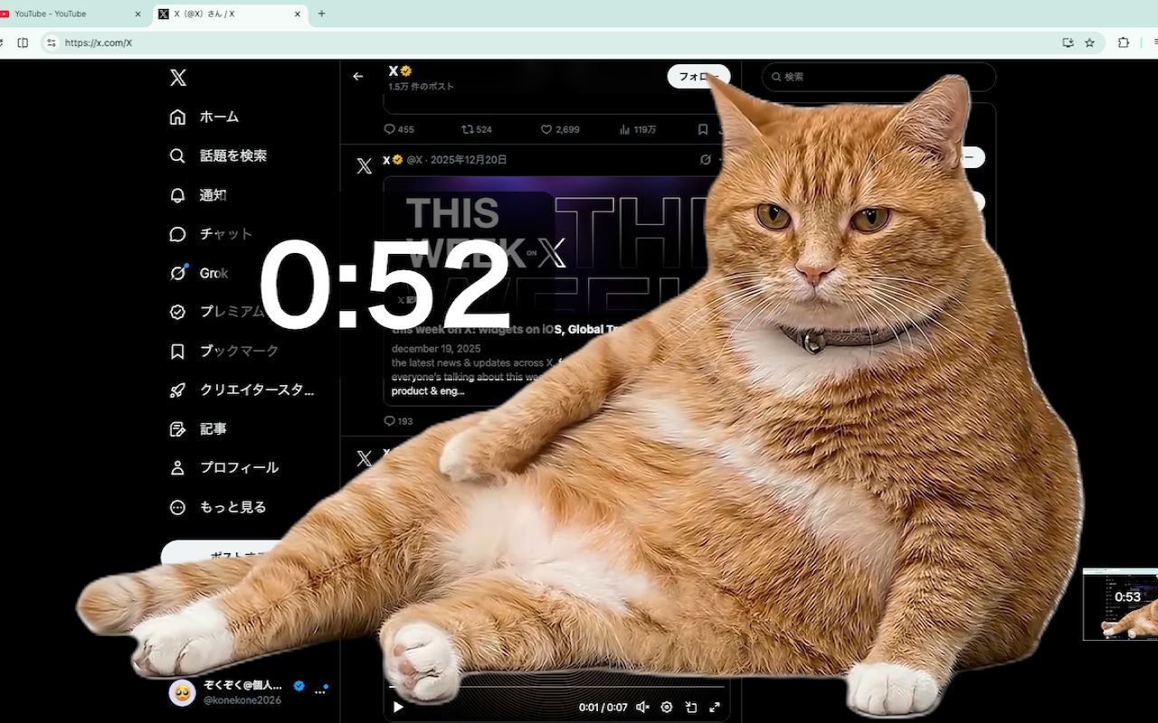 XやYouTubeを見すぎるとデブ猫が画面占領、個人開発の強制休憩ツールが話題 海外からも反響 – ITmedia NEWS –