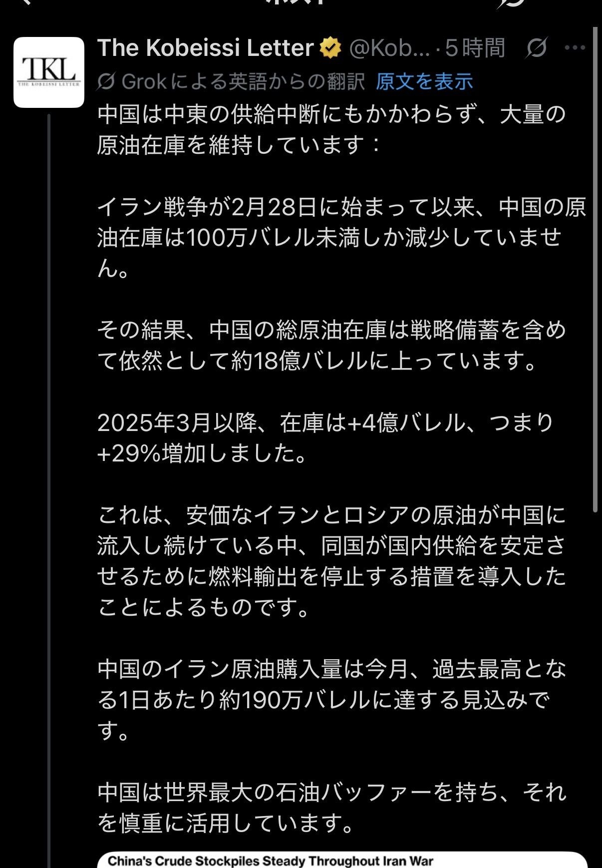 イランはどこかに引き取ってもらわないと貯蔵施設パンパンなってて運転停止(≒ほぼ施設再起不能)か、とかいうてる上で買ってくれるのが中国ぐらいしかおらんねんから