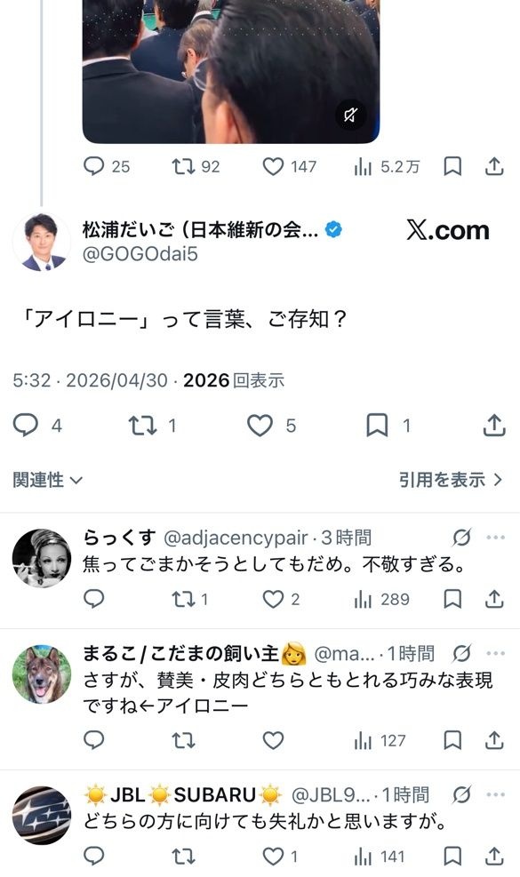 高市への皮肉で言ってるってこと?
