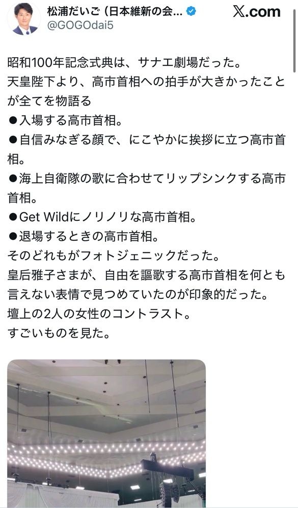 昭和100年記念式典は、サナエ劇場だった。