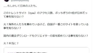 嫌儲 海外「日本人が外国人の割れを叩いてるけど、違法ダウンロード1位はジャップだぞ😓…」