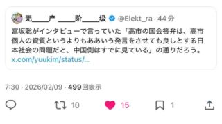 ニュー速 X識者「中国は今までは高市が変で日本国民は別という認識だったが、今後は心置きなく日本ぶっ叩ける」