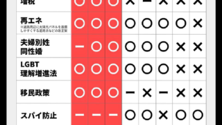 嫌儲 各政党のスタンス比較がXでバズってしまうwwwwこれを参考にしたら選挙間違いなしだぞwwwwwwww
