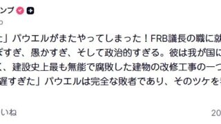 嫌儲 トランプ「遅すぎパウエルはまたもやらかした!愚かで政治的すぎてFRB議長には不適格!ツケを払わされているのが我々国民!