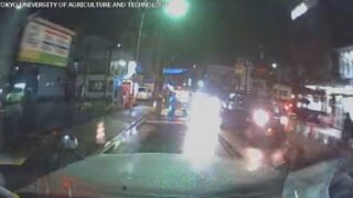 ニュー速 対向車のライトが路面に反射⇨歩行者に気づかず急ブレーキ。静岡県警がドラレコを公開