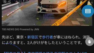 ニュー速 新宿駅近くで車が歩道に突っ込む 複数人が病院搬送