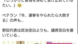 ニュー速 立憲・野田氏、衆議院解散の報道について「また政治空白を作る事に」