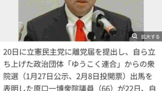 ニュー速 元立憲・原口一博「チームみらいに入党したい」